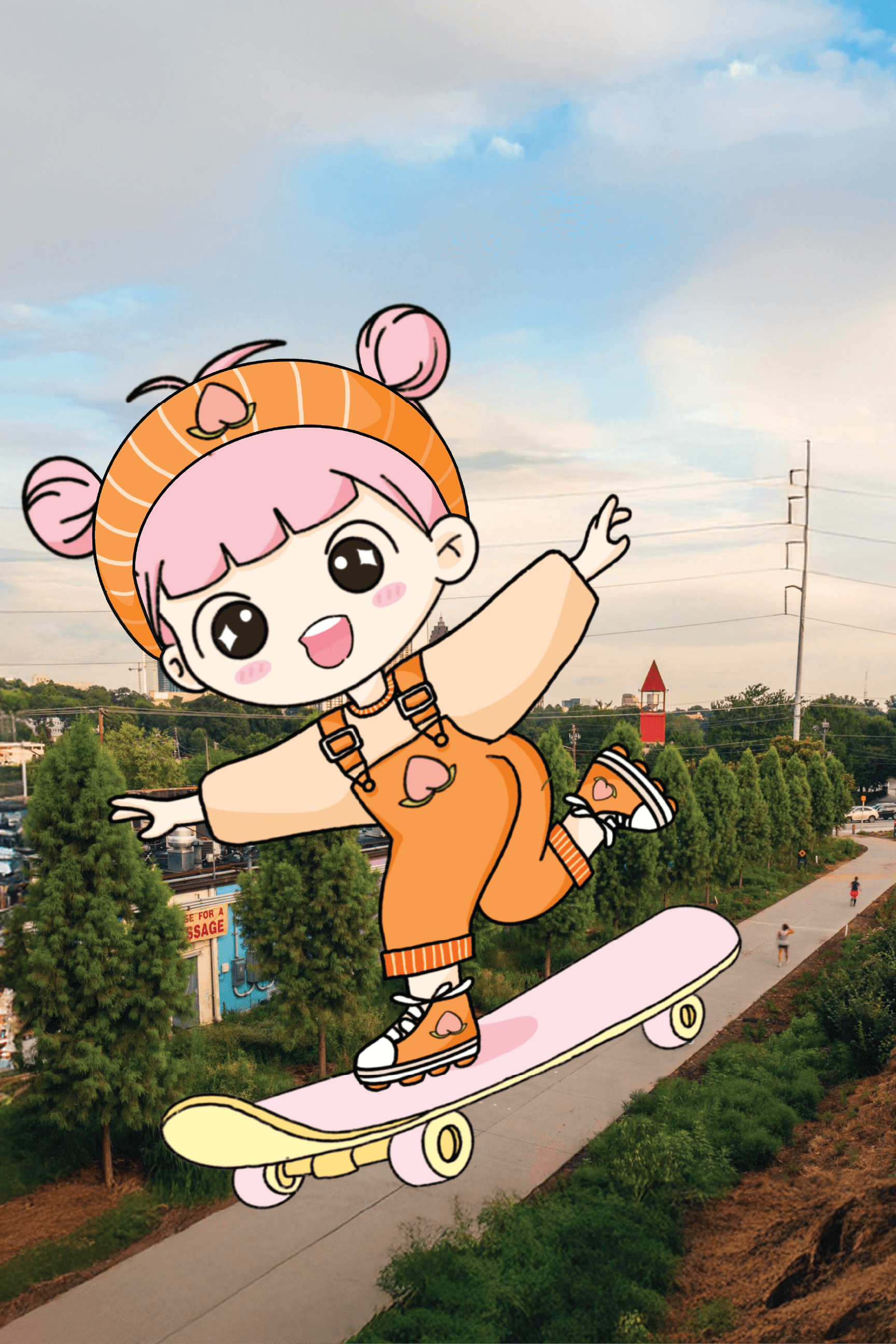 I began by researching iconic Atlanta landmarks and selecting locations that felt dynamic and culturally significant. After choosing high-quality photographic backdrops, I analyzed lighting direction, perspective, and scale to determine how the character should interact within each scene. Next, I illustrated the character with adjusted proportions and poses to match the environment’s depth and composition. I carefully refined shadows, color tones, and atmospheric effects to create harmony between the illustrated figure and the photographic setting.