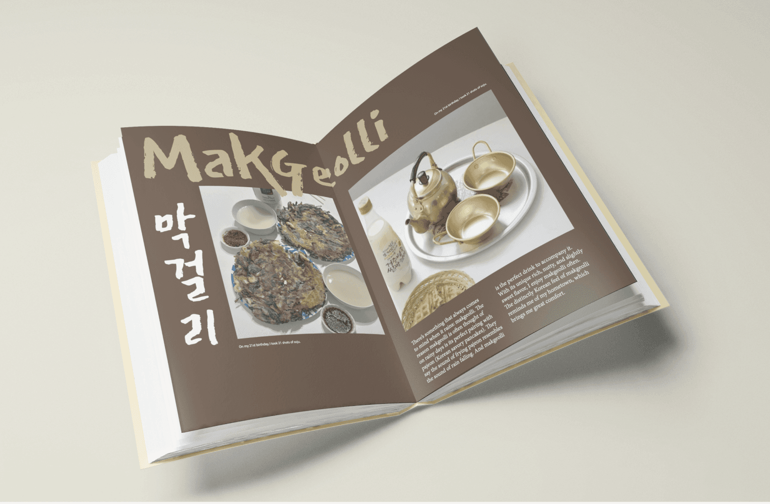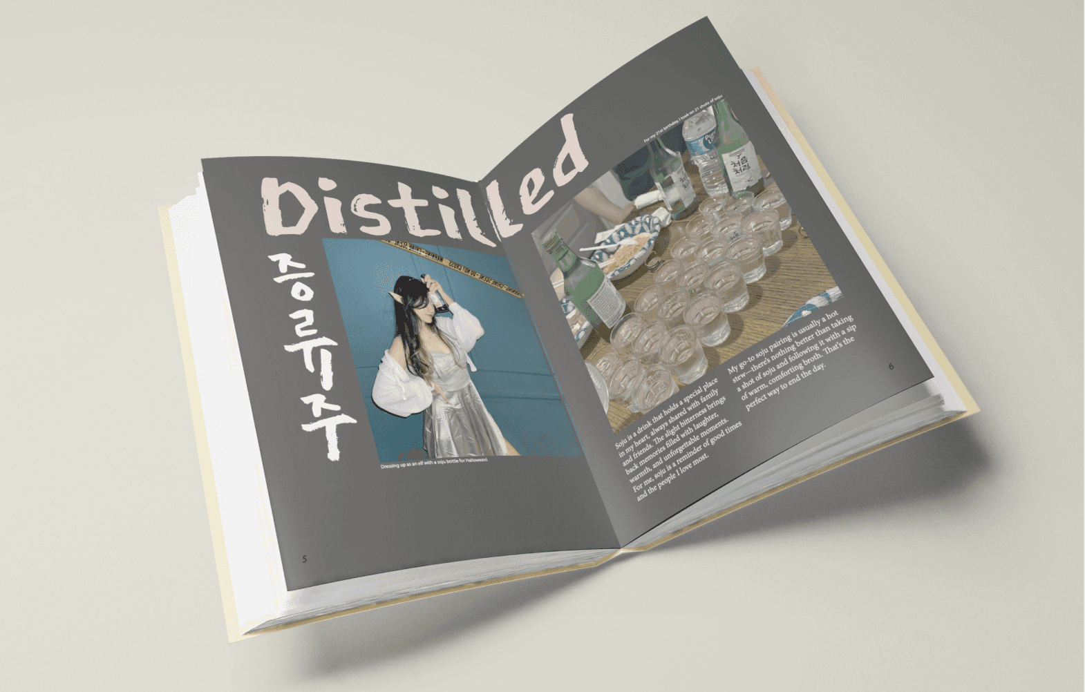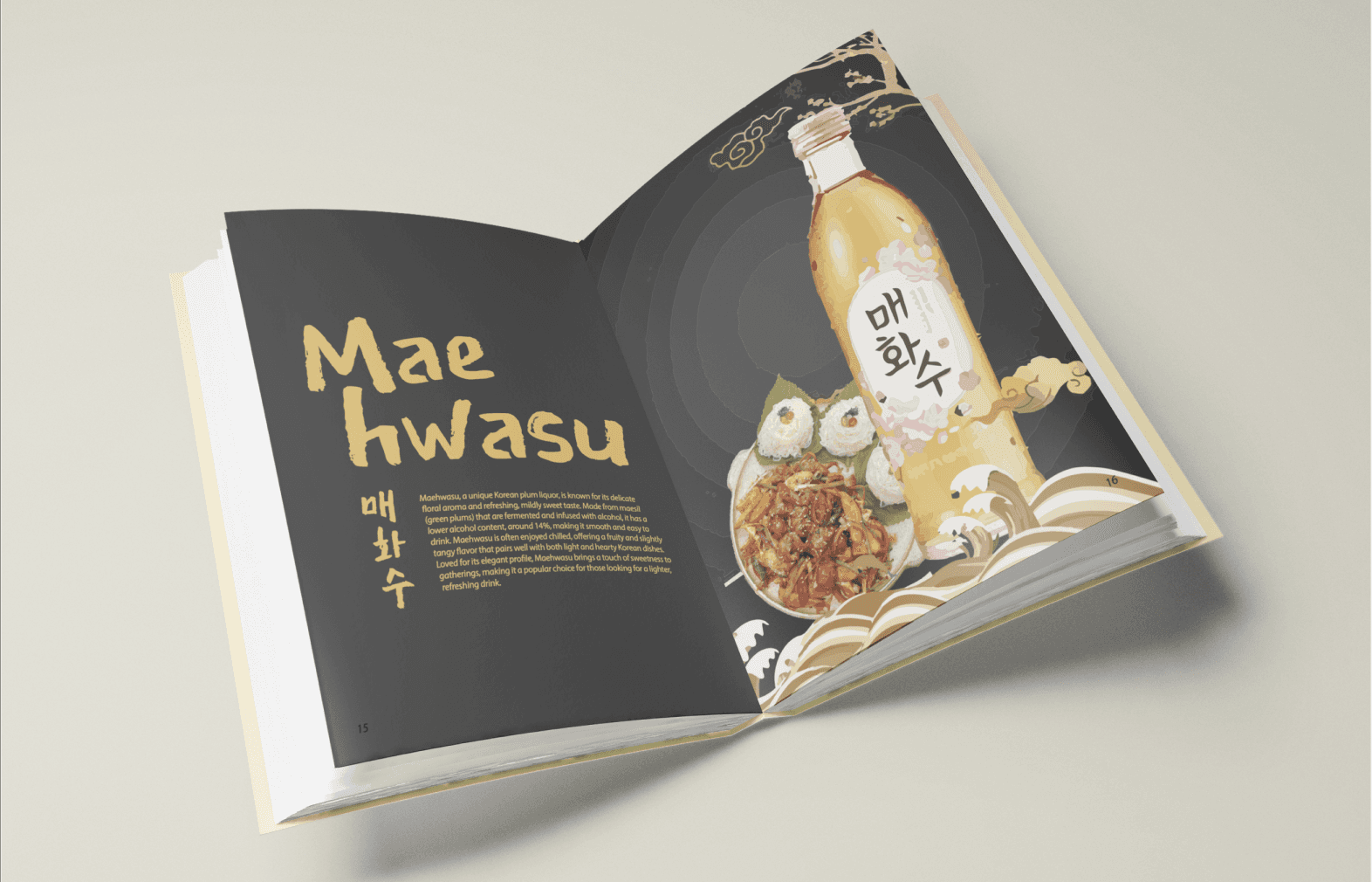 This project is a collection book that introduces Korean alcoholic beverages through editorial design and visual storytelling. The book explores the cultural background, drinking traditions, and atmosphere in Korean alcohol, presenting them in a curated, contemporary format that balances tradition and modern sensibility.